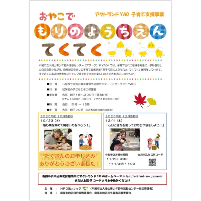 八尾市・大阪市在住の方は3カ月前の1日から、他市の方は2カ月前の1日よりご予約いただくことが可能です。